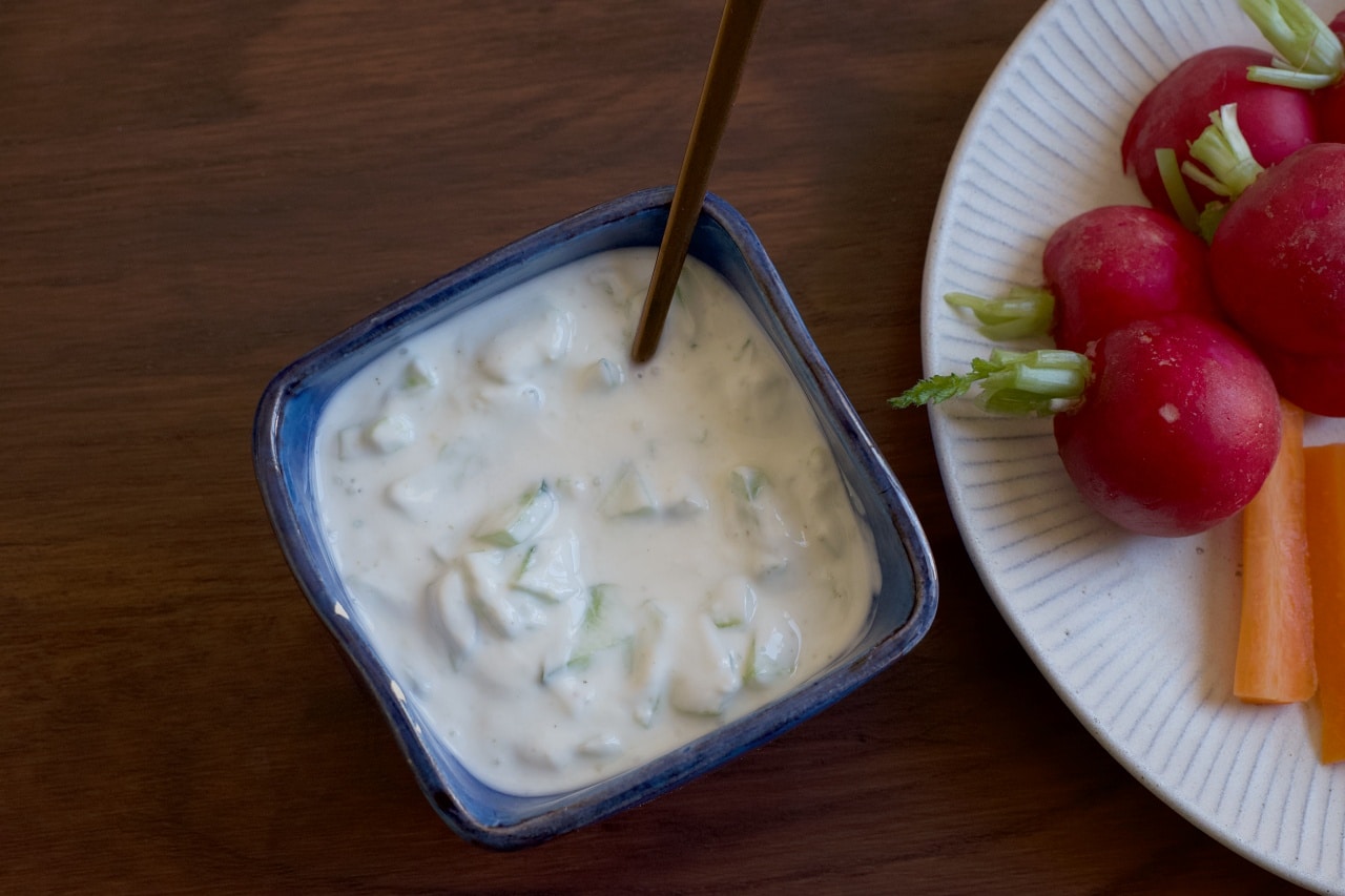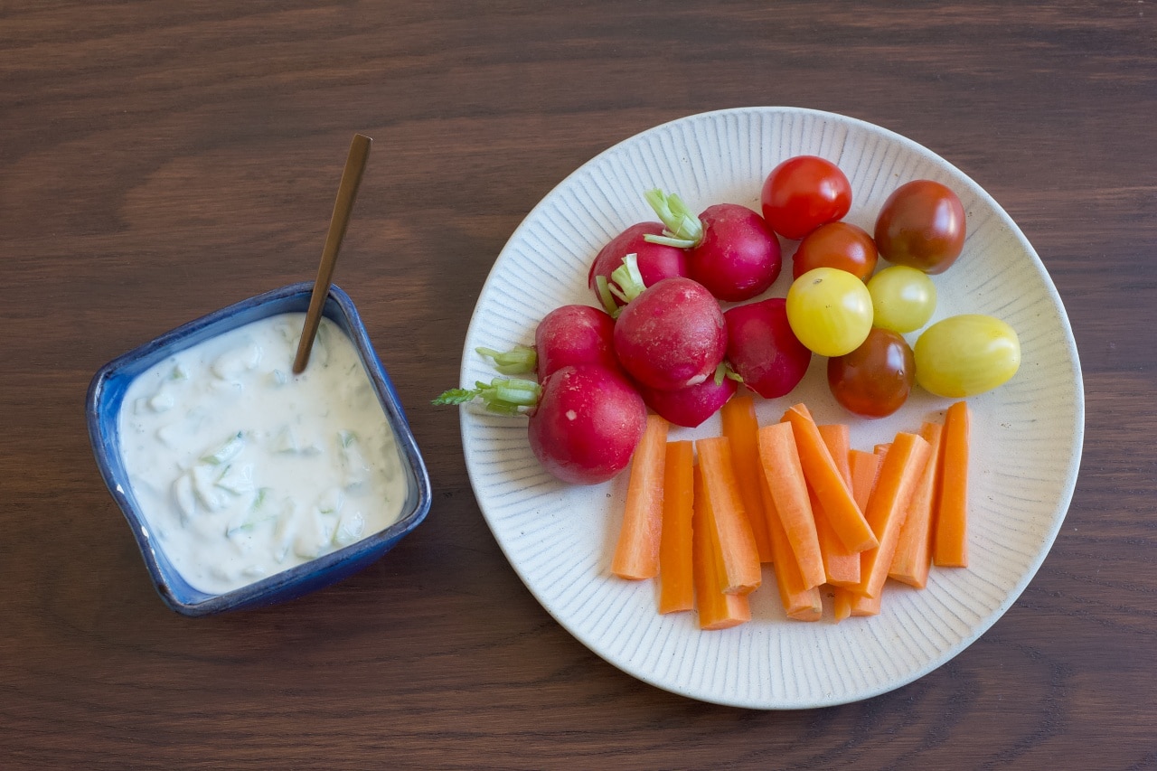 ザジキソースで食べる生野菜のディップ