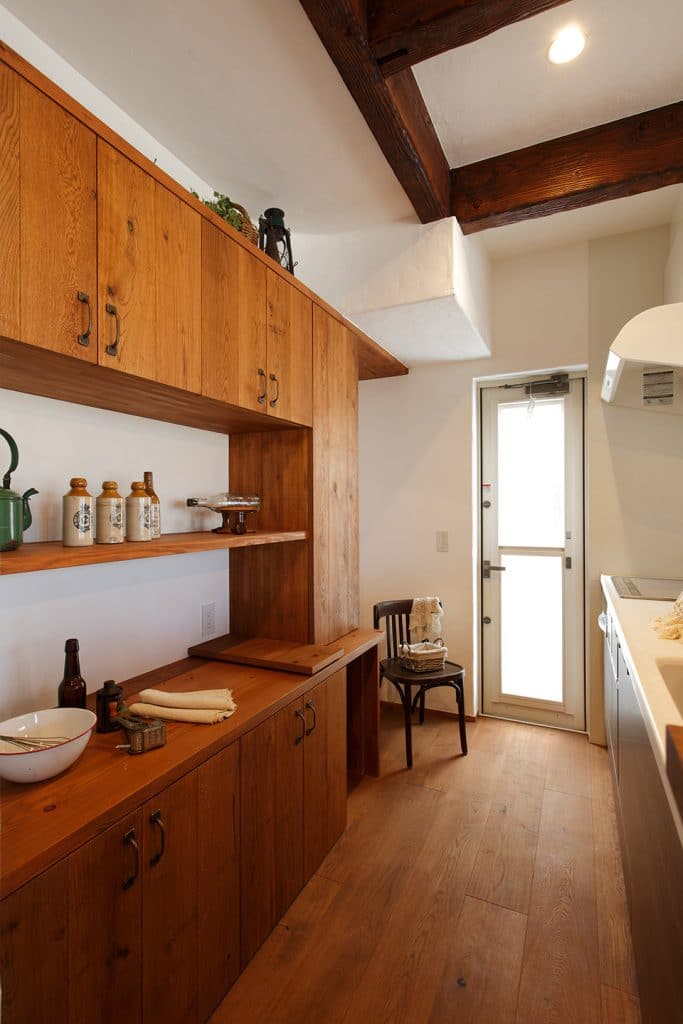 「キッチンに勝手口が欲しい!と思って付けたけど、大きな窓もありお庭への出入りもしやすい間取りだから、意外と使わなくて…腰壁にすれば物も置けて良かったかな?」